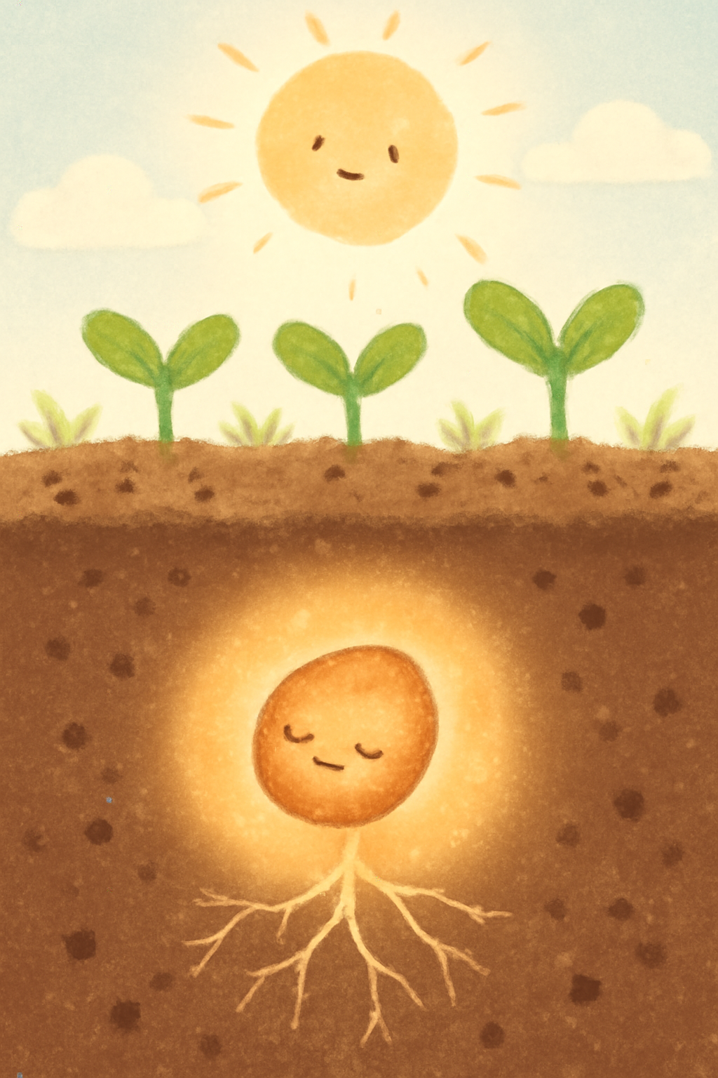 깊은 숲 속, 오래된 나무 아래에 작은 씨앗 하나가 있었어요.